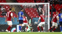 Penyerang belanda, memphis depay, merayakan golnya ke gawang austria dalam laga kedua fase grup euro 2020 pada jumat (18/6/2021) dinihari.